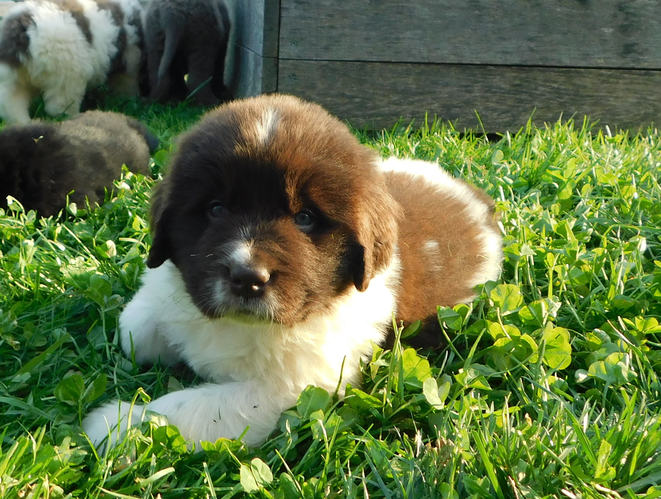 Beautiful Shania is nurturing a litter from Mr Moose as well! She also has a nice variety of colors and genders. Our children are in their glory, cuddling puppies every day 🙂