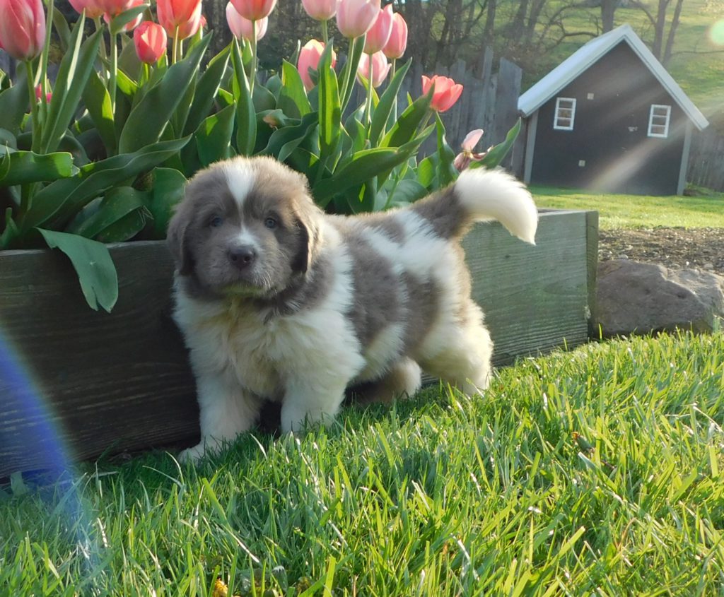 Moose weighs 120 pounds, Shania weighs 90 pounds. The girls in this litter will most likely be closer to Shania’s weight, and the boys, Moose’s weight.